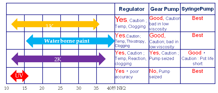 Understand the differences between currently commonly used paint pressure regulators, gear pumps, and syringe metering pumps
