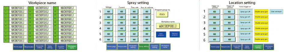 - In cases of multiple automatic guns, adjust the spraying parameters of the main controller, and the parameters of other secondary controller change synchronously.。